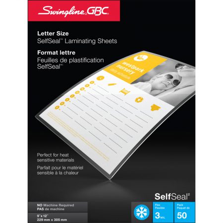 Pochettes de plastification autocollantes SelfSeal™, 3 mil, format lettre, 9 po x 12 po – paquet de 50